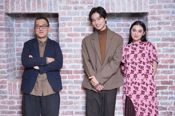 左から脚本・演出の上田誠、安倍役の中川大輔、早良京子役の八木莉可子 撮影:源賀津己