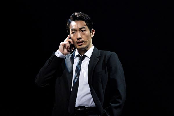 ストーリー面ではまずサスペンスの要素が示され、レイチェルを狙う者、のちに姿を現すストーカー(大久保祥太郎)が底知れぬ緊迫感をもたらす。ストーカーからレイチェルと彼女の息子・フレッチャー(野林万稔/古澤利空/笹本旭のトリプルキャスト)を守るために雇われたのが、敏腕ボディガードのフランク・ファーマー(大谷亮平)。彼らのヒューマンドラマ、そして親子愛が描かれる。また、アーティストとボディガード双方のプロフェッショナルな姿を描くお仕事ドラマや、衝突から急速に惹かれ合っていくふたりとその影で切ない片思いを抱く人がいて…という王道のラブストーリーの要素も。それらが歌、そして自然な場面展開によって融合している、実に贅沢な構成なのだ。