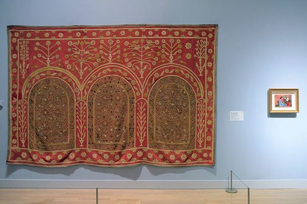 展覧会は、マティスの作品をテーマごとに並べつつ、ゆるやかな時系列を持つよう5つのセクションで構成されている。マティスが明るい色彩に関心をもつようになるまでの道のりをたどるセクション1「色彩の道」、ニースのアトリエで描かれた作品やアトリエを主題に描かれた作品を中心に展示するセクション2「アトリエ」、衣装デザインや装飾壁画、テキスタイルの領域まで創作の範囲を広げたセクション3「舞台装置から大型装飾へ」と順路に沿って歩みを進めていくと、色彩がどんどん豊かになり、造形は自由になり、そして次第に作品のサイズが大きくなっていくことが見て取れる。