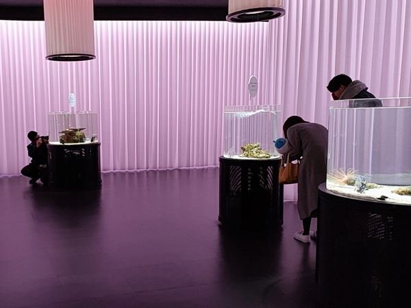 そして隣接する、特別に設置されたフォトスポットへ。そこに入って撮影、いや、私が魚や動物のように見られてる~!そう、見る/見られるの関係性にも気付かされる。