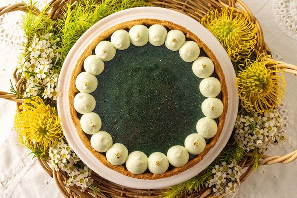 皮が薄く、サクサクとした食感とジューシーで甘酸っぱい味わいが特徴の緑色のぶどう、トンプソンをタルト一面に飾った華やかなタルトも必見です。