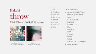 会場限定盤は、3月15日(金) 千葉LOOK公演を皮切りに、全国13都市を回るツアー『Hakubi throw release tour』の会場にて販売。『throw』のタイトルロゴが入ったクリアジャケット仕様となっており、購入特典として付与されるアザージャケットと重ねてCDケースに入れることで、ジャケットデザインが完成する。会場限定盤購入特典のアザージャケットは会場によって絵柄が異なる全7種。なお、アザージャケットには漏れなくHakubiメンバーの直筆サインが入る。