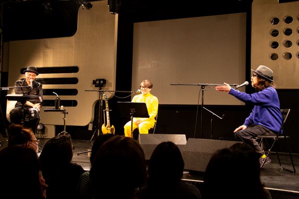 続いてふたりで「オンリー・ユー」(ばちかぶり)をセッション。ここからオーケンとみうらじゅんのトークに突入していくのだが、「よかったらハヤシくんもいてよ」というオーケンの一言で、この日の出演者3人によるトークセッションが実現した。