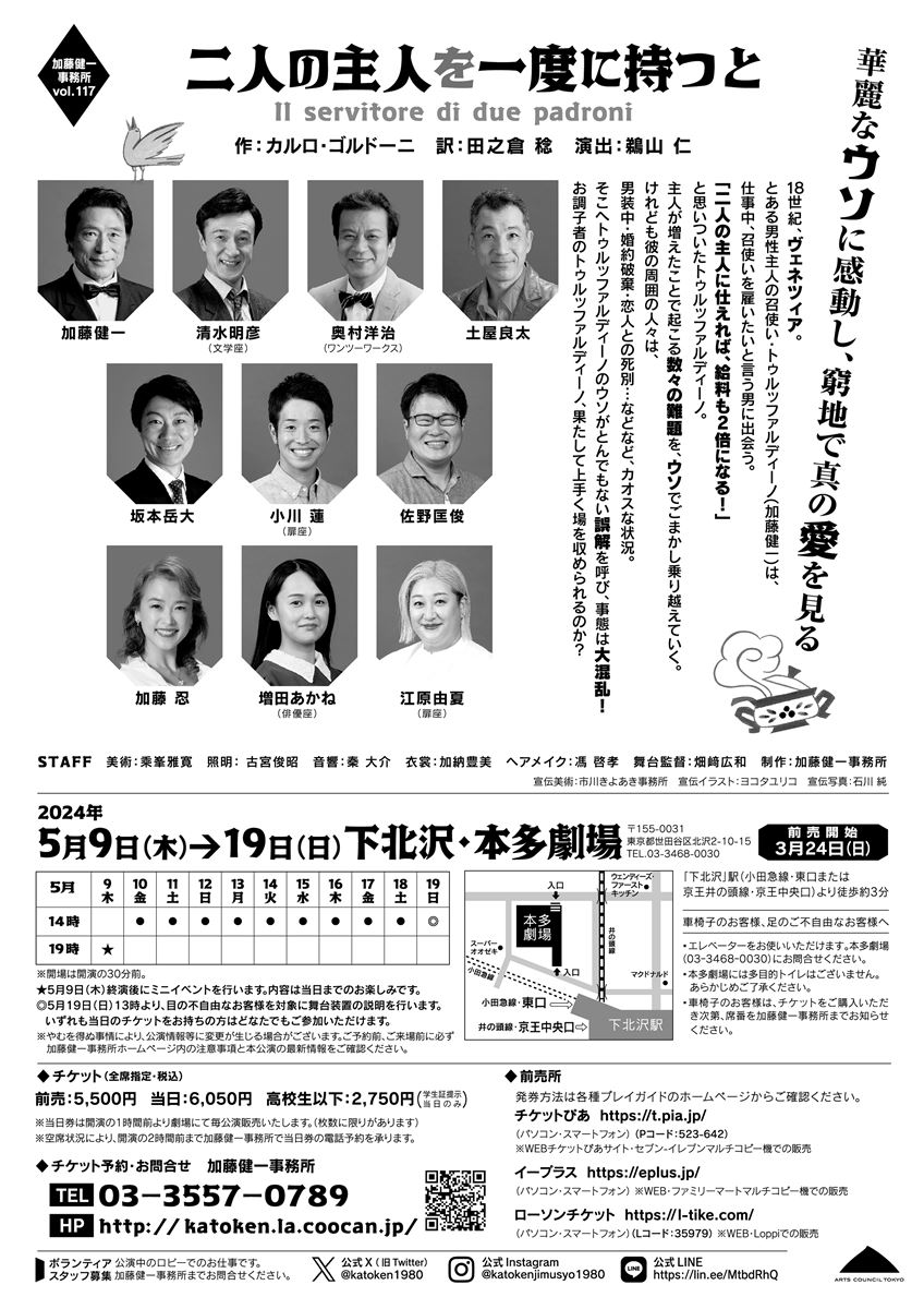 「口からでまかせ系コメディinヴェネツィア」 加藤健一事務所の5月公演『二人の主人を一度に持つと』
