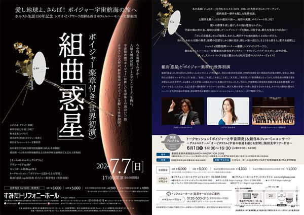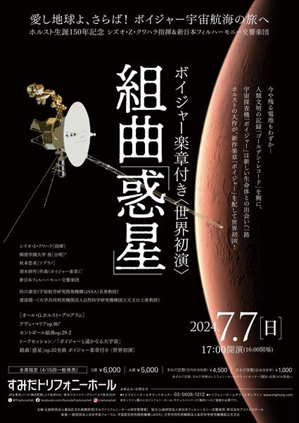 この名曲に、新たな楽章『ボイジャー』を組み込んだ新編成の『惑星』世界初演が、今年の7月7日(日)に、すみだトリフォニーホールで開催される。