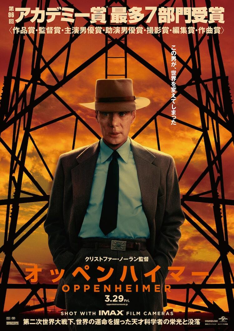 監督 / クリストファー・ノーラン 出演 / キリアン・マーフィー、エミリー・ブラント、マット・デイモン、ロバート・ダウニー・Jr.、フローレンス・ピュー、ジョシュ・ハートネット、ケイシー・アフレック、ラミ・マレック、ケネス・ブラナーほか