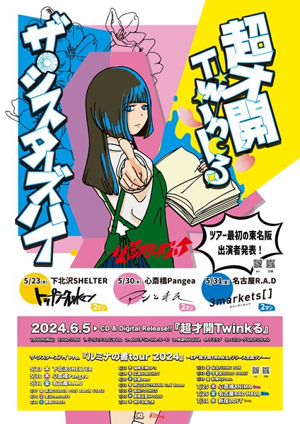 本ツアーは、6月5日(水) に発売される新作EP『超才開Twinkる』を携え、全国19カ所を巡る。このたびゲストとして、5月23日(木) の下北沢SHELTER公演にトップシークレットマン、5月30日(木) の大阪心斎橋Pangea公演にアンと私、5月31日(金) の名古屋R.A.D公演に3markets[ ]が出演することが決定した。