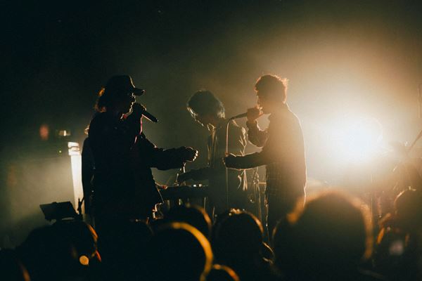 東京での対バンは、先輩ロックバンドTENDOUJIが先攻で登場。オルタナティブにロッキンなライブで、60分たっぷり高い熱量で盛り上げていく。後攻は主催のMega Shinnosuke。転換中フロアには、ポップミュージックの既成概念を飛び越えたハイパーポップが流れ、今か今かと期待感で高まるフロア。