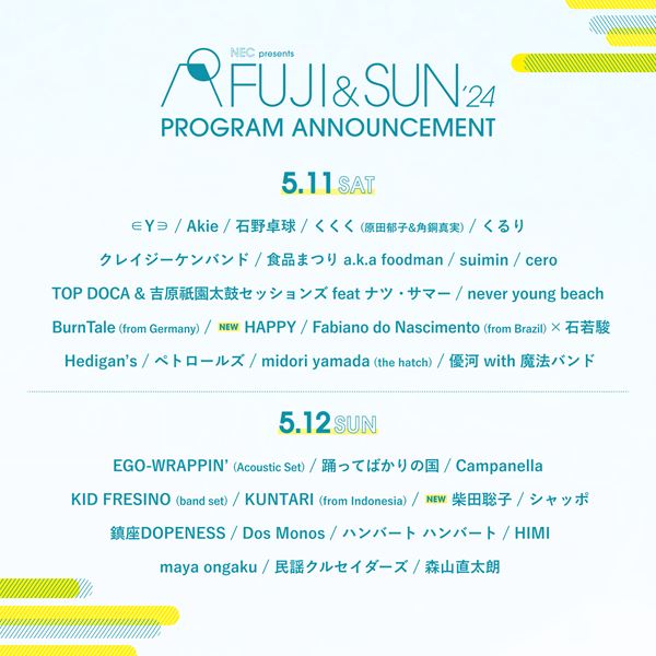 『FUJI & SUN’24』第5弾出演アーティスト