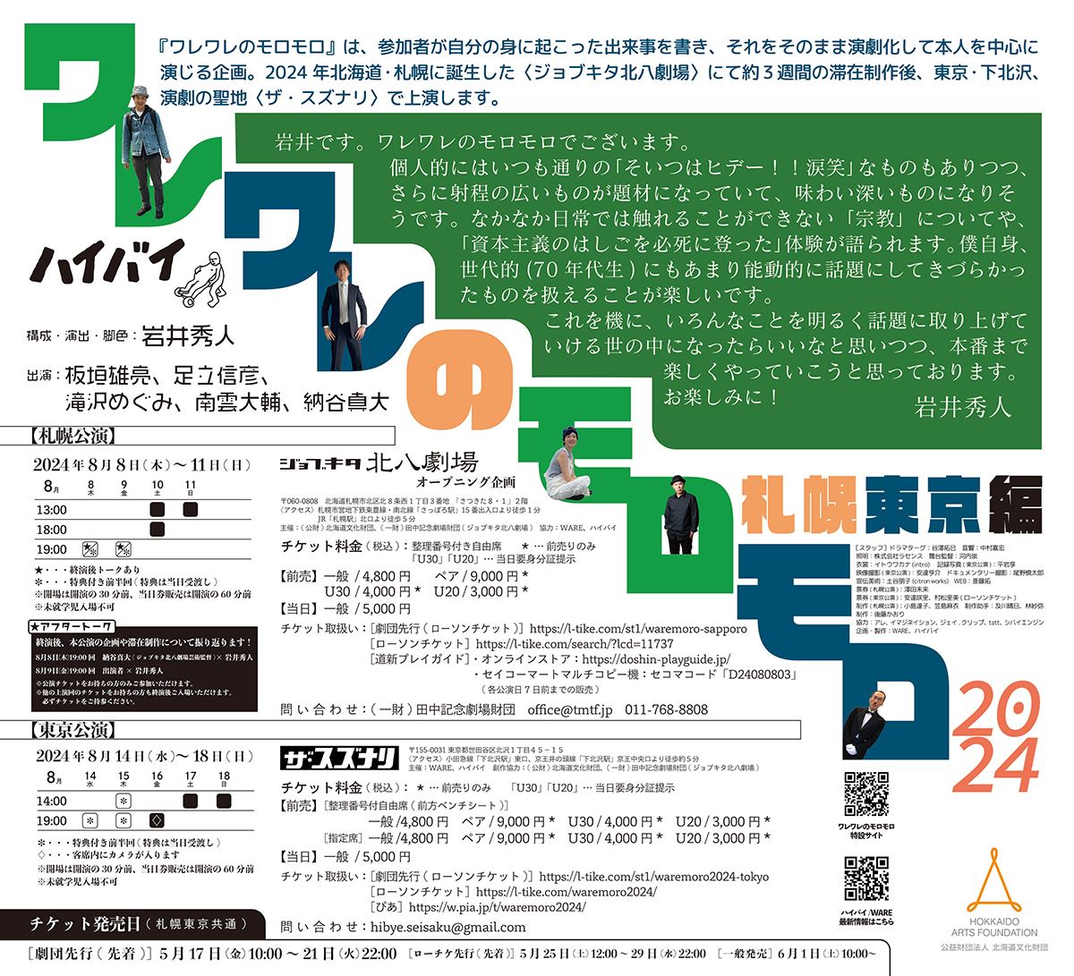 岩井秀人主宰のハイバイ『ワレワレのモロモロ2024 札幌東京編』詳細発表