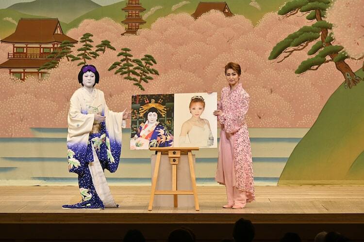 「歌舞伎鑑賞教室」は、歌舞伎の解説と、歌舞伎の名作上演からなる2部制の公演。第1部「歌舞伎への誘い」では、元OSK日本歌劇団トップスターで講談師の桜花昇ぼるが、歌舞伎における男性らしさと女性らしさについて、歌劇との違いを交えて解説したほか、片岡千壽、片岡愛治郎と共に舞踊を披露した。