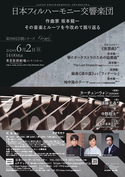 本公演では坂本龍一作品から「箏とオーケストラのための協奏曲」、映画 『ラストエンペラー』より「The Last Emperor」、地中海のテーマ(1992年バルセロナ五輪開会式音楽)、そしてドビュッシーの《夜想曲》と 武満徹の組曲 《波の盆》より「フィナーレ」を演奏。クラシック音楽を学び、オーケストラも指揮した彼の作品をクラシック文脈の中で捉え直してみる試みだ。