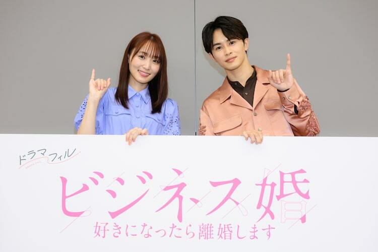 ドラマフィル「ビジネス婚─好きになったら離婚します─」制作発表の様子。左から菅井友香、草川拓弥。