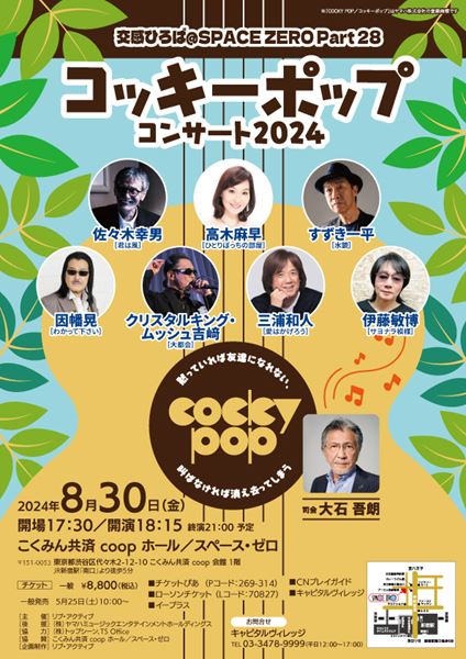 初日は、1970年から1980年代にかけて日本の音楽シーンの一翼を担ったヤマハポプコン、ラジオ、TVコッキーポップの歌に出会えるイベント『コッキーポップコンサート2024』が行われる。すずき一平、伊藤敏博、三浦和人、クリスタルキング・ムッシュ吉﨑らが出演し、“あの頃”を感じられる“ひととき”となる。