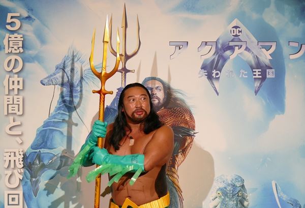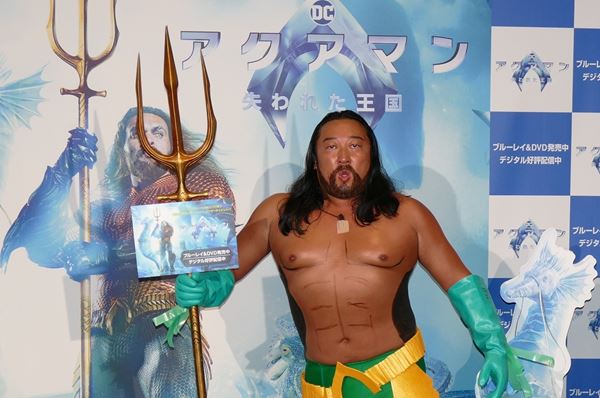 すべて見る全世界で大ヒットを記録した海中アクション・エンターテイメント『アクアマン/失われた王国』(ジェームズ・ワン監督)のデジタル配信/ブルーレイ&DVDリリース記念イベントが5月22日(水)、都内で行われ、お笑いトリオ・ロバートの秋山竜次が、主人公・アクアマンの扮装で出席した。