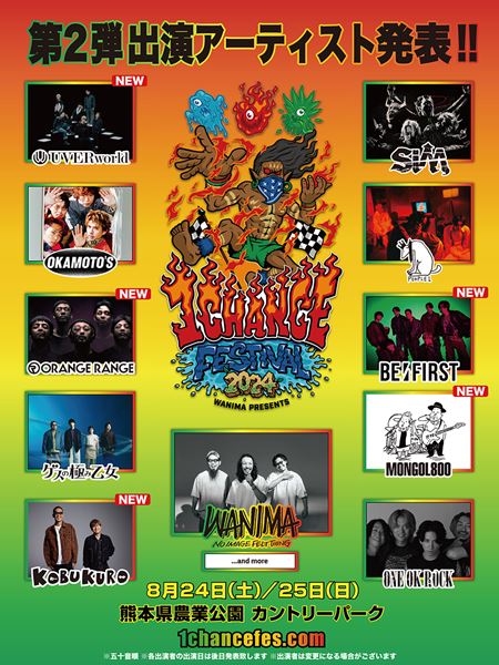 WANIMA主催『ワンチャンフェス2024』UVERworld、ORANGE RANGE、BE:FIRSTら第2弾出演者発表