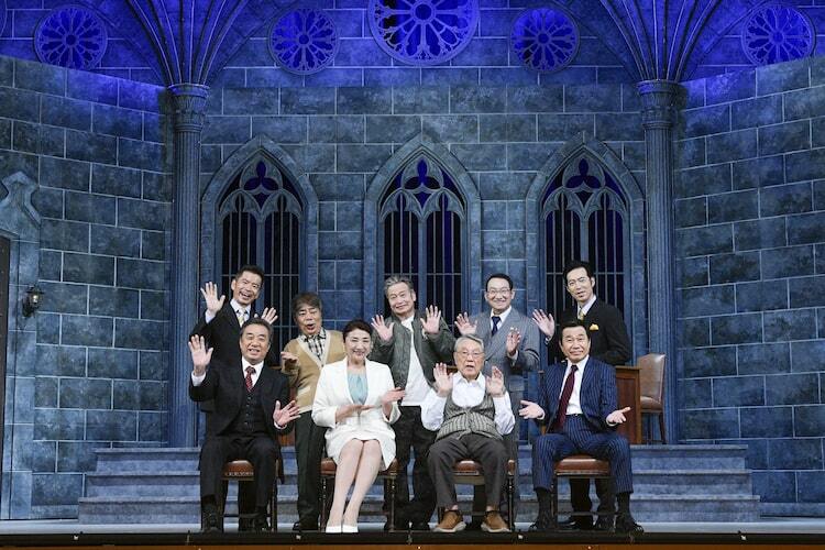 「新橋演舞場シリーズ第10回記念公演 東京喜劇 熱海五郎一座『スマイル フォーエバー ~ちょいワル淑女と愛の魔法~』」取材会より。前列左から渡辺正行、松下由樹、伊東四朗、三宅裕司、後列左から深沢邦之、小倉久寛、ラサール石井、春風亭昇太、東貴博。