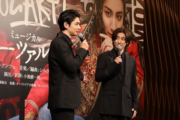 12年前の初演からミュージカルファンを魅了し続け、今回8シーズン目となる本作だが、これまで日本公演で主演のヴォルフガング・モーツァルト役を務めたのは、井上芳雄、中川晃教、山崎育三郎、そして古川のたった4人。古川曰く「僕を含め先輩方が席を譲らなかったからだと思うんですけど、それだけ魅力のある役なんです」。今回5人目として、新たに京本が名を連ねることになる。「やっと、念願の5人目。(『エリザベート』の)ルドルフとしてWキャストをやらせていただいたり、トートとして(京本演じる)ルドルフと向き合ったりしながら、彼の素晴らしさというか魅力は分かっているので、きっと最高のヴォルフガングを作ってくれるんじゃないかなと思っています。稽古場でもたくさん刺激をいただきたいなと思っておりますし、僕も彼に刺激を与えられる存在でありたい」と期待を寄せる。また、「彼は自分で天才じゃないって言ってるけどもう天才なんです。ルドルフの、俺があんな苦労したナンバーを軽々やっちゃう……」だから「アドバイスすることは何もない」とも。