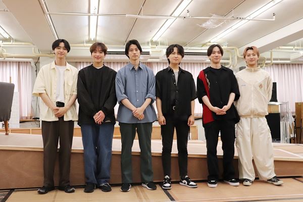 ミュージカル『GIRLFRIEND』公開稽古より、左から)井澤巧麻、島太星、高橋健介、萩谷慧悟、吉高志音、木原瑠生