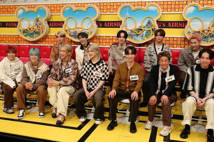 前列左から木村柾哉、佐野雄大、池崎理人、松田迅、後藤威尊、堀内健、河井ゆずる、後列左から許豊凡、高塚大夢、尾崎匠海、藤牧京介、西洸人。(c)フジテレビ