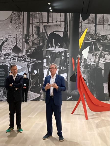 同展は、カルダーの孫であり、ニューヨークのカルダー財団理事長を務めるアレクサンダー・S.C.ロウワーのキュレーションと、カルダー財団と40年にわたる強い関係を築いてきたニューヨークのペースギャラリー(7月には、日本初出店として麻布台ヒルズ内にギャラリーをオープン)の協力のもとに実現した。開幕前の記者内覧会では、この企画者アレクサンダー・S.C.ロウワーとペースギャラリーのマーク・グリムシャーが作品を解説した。