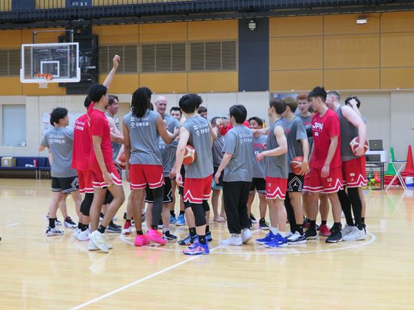 「北海道へは16人ぐらいに絞って連れていく。16人がベスト。(2試合で全員起用するか)そう。トライアウト。張本(天傑)とは1年半会っていなかったけど、昨日から本当にいい動きをしている。山ノ内(勇登)とジェイコブス(晶)にも経験させたい。札幌が終わったらNBA組(渡邊雄太、八村塁)も合流する。ヨーロッパへ行くのは12名だとケガ人が出た時に大変なので、たぶん14名くらいになると思う」