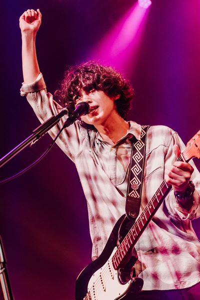 彼らにとって会場のZepp Osaka Baysideはワンマンでは初登場の場所だが、大阪はホームタウンとありチケットはもちろんソールドアウト。開演前にもかかわらず熱気に満ち、大歓声がいつものムツムロによる口上をかき消すほどだ。そして注目の幕開けはギターもべースもうなるイントロから、アルバム『はじめから自由だった』の最後を飾る曲「THE SONG」。シングル表題曲としてリリースした時からの人気曲とあり、フロアは一気にヒートアップする。さらに「全部 全部 全部」のコールも高らかな「ギター」と、痛快なギターと不敵なボーカルがクセになる「サレンダー」を連ね、わずか3曲で真夏の体感温度に。
