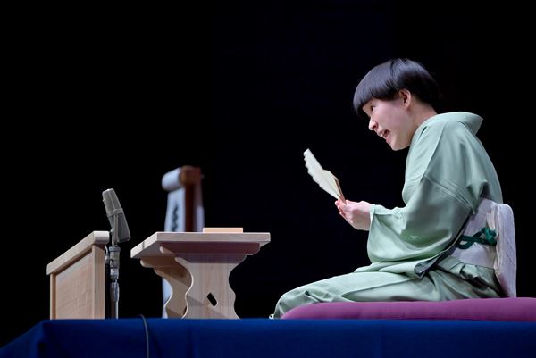 今回はゲストが人間国宝なので、先にネタ下ろしをしてホッとした状態で聴きたいと、一席目『くしゃみ講釈』を高座にかける。振り切った「のぞきからくり」の場面や、きれいなくしゃみの形態模写に会場は爆笑。元は上方落語のネタだけあって、二葉さんの絶妙でリズミカルな語り口が活きるすばらしい高座となった。