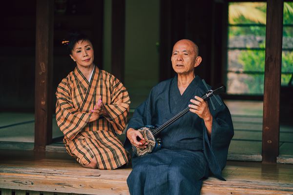 戦後の沖縄文化を象徴する1曲「沖縄を返せ」をうたい続け、八重山歌謡の筆頭としての活動も怠ることがないのが「だいくさん」。パートナーの大工苗子のほうが人気がある、と舞台上からダンナがクドくのも当然の、キュートな踊りとお琴を担当する大工苗子もお見逃しなく。