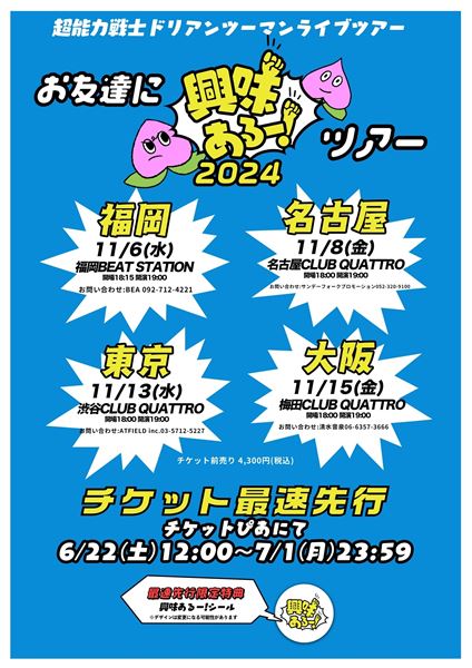 超能力戦士ドリアン、秋にツーマンライブツアー『お友達に興味あるー!2024』開催発表