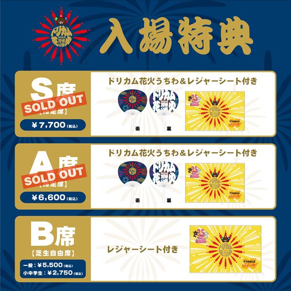 絶好のロケーションでおよそ1万発の「音楽&花火」が楽しめるほか、DJ Mass MAD Izm*、中島ヒロトのDJステージやMs.OOJAのスペシャルパフォーマンスも行われる。会場内には、「ドリカム花火」のグッズ販売やフードエリアなども設置予定。