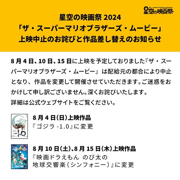 名作を屋外で楽しめる「星空の映画祭」が今年も開催