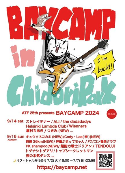 すべて見る9月14日(土)・15日(日) に神奈川・ちどり公園で開催される野外音楽フェス『ATF 25th presents BAYCAMP 2024』の第4弾出演アーティストが発表された。