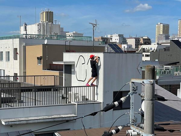 一方、トモトシは、引っ越し業者が壁や床に傷をつけないように養生する技術を応用し、建物の鋭角な部分を「やわらかく」、つまり「ほんわか」させていく試みを展開。また、BIENは、約9メートルの吹き抜けに建物の骨組みを現出させることで、リノベーションの痕跡を可視化する。