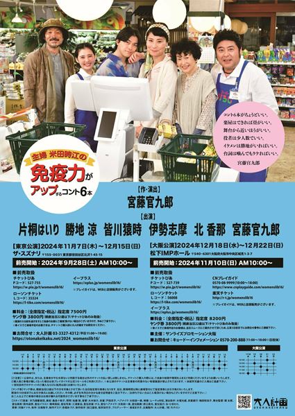 すべて見る11月7日(木) より東京のザ・スズナリにて、また12月18日(水) より大阪・松下IMPホールにて上演される、ウーマンリブvol.16『主婦 米田時江の免疫力がアップするコント6本』のメインビジュアルおよび公演詳細が発表された。主婦・米田時江の日常生活を覗き見るようなオムニバスコントらしく、実際のスーパーで撮影された宣伝写真、篠崎真紀のイラストによる生活感満載のチラシが注目を集めている。