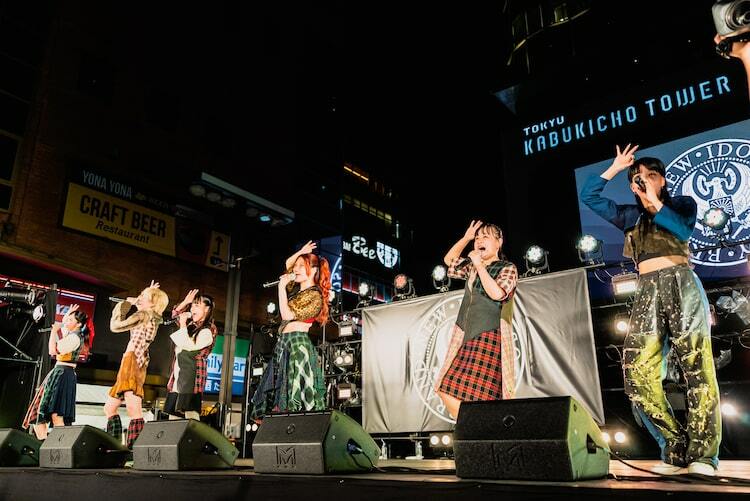 会場内には約1000人の観客、そして約200人のゲストが来場。広場の外にあふれる場内に入れないファン、路傍の人、外国人観光客たちも、歌舞伎町タワーの巨大ビジョンに映し出される映像で、BiSのライブを見届けた。10年ぶりに再集結したということで昔ながらの自己紹介をしたBiSは、この日のライブがちょうど1年前に渡辺の提案で行われることになったことを明かし、10年ぶりのお祭りを楽しんでほしいとオーディエンスに呼びかけた。