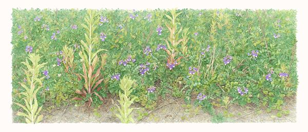水彩による植物画に取り組む倉科光子は、2013年から、東日本大震災の被災地に生えた植物の変化を描き続け、近年では復興事業で変わりゆく植生にも目を向ける。植物と目を合わせるかのような低い視点から描かれる作品には、被災した人々の営みも重ねられているという。