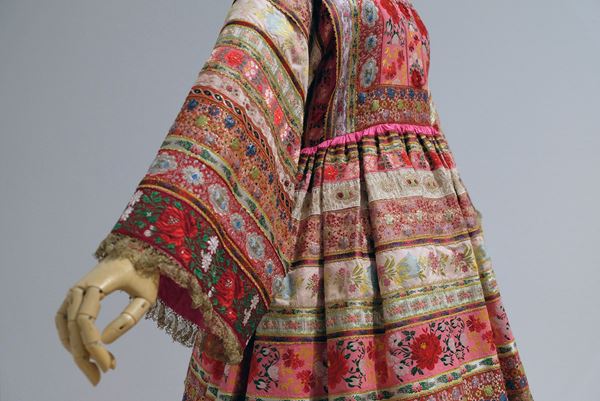 1982〜83年の秋冬コレクションとして発表したドレスは、髙田が約20年かけて集めた花の刺繍が施されたリボンが、のべ200メートル分使われている贅を尽くしたもの。本作は1999年に行われたラストショー「30ans」にも登場し、日本を代表するモデル、山口小夜子が着用している。