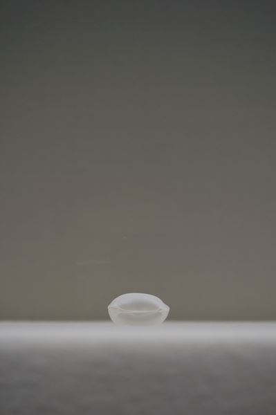 第3会場となるラウンジには、空の瓶の上に、水を満たした瓶を載せた《母型》が置かれている。空の瓶は、水=生を次の生者へ送った「生の外」を表し、ふたつの瓶で「生の内」と「生の外」の往還を象徴している。