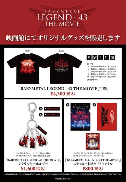 すべて見るBABYMETALのライブフィルム『BABYMETAL LEGEND - 43 THE MOVIE』のオリジナルグッズが発表された。