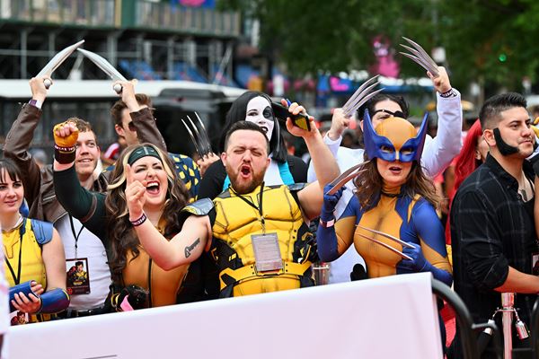 ニューヨークと言えば、アイアンマンやキャプテン・アメリカをはじめ、本作の主役となるデッドプールやウルヴァリンをも生み出したマーベル・コミックスが本社を置く場所。彼らにとっての聖地であり、ホームタウンと言える場所だ。デッドプールやウルヴァリンのコスチュームに身を包んだ熱狂的なファンも多数駆けつけ、大きな熱気が漂っていた。