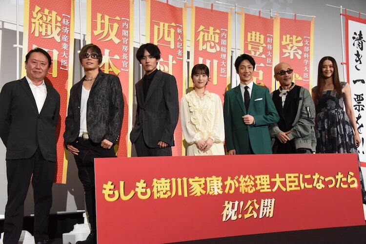 映画「もしも徳川家康が総理大臣になったら」の初日舞台挨拶が本日7月26日に東京・TOHOシネマズ 六本木ヒルズで行われ、キャストの浜辺美波、赤楚衛二、GACKT、観月ありさ、竹中直人、野村萬斎、監督の武内英樹が登壇した。