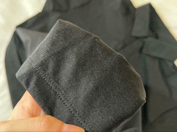 ただ、実際に着用してみると若干熱がこもるような印象を受けました。通気性は普通ですが、吸汗速乾機能付きなのでそこまで気にはならなさそうです。
