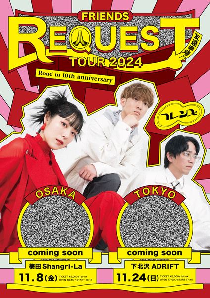 すべて見るフレンズが、10年目イヤー最初の対バンツアー『FRIEND REQUEST TOUR2024-Road to 10th anniversary-』を開催する。