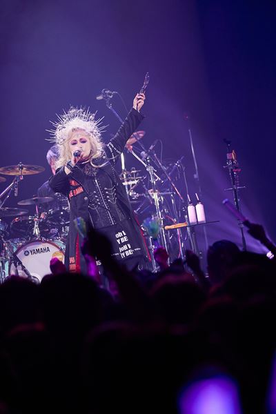 目潰し的なストロボ照明が明滅し、転がるタム回しフレーズでスタートしたのは、新作から「EVERY DAY IS A NEW DAY」。“これから始まるストーリー”、“世界を今 変えて行こう”といったワードが耳に飛び込んでくる、フレッシュな予感に満ちた曲。そのエンディングから、今度はギターのファンキーなカッティングが始まり、ベースのスラップ、ドラムへと楽器チーム3人がソロ回しを披露。ハンドクラップのリズムで観客が手拍子していると、そこへJILLが“オー、ハッピーデイズ”と唄いはじめ、観客とのコール&レスポンスに突入。映画『天使にラブソングを』でも有名なゴスペル曲「oh happy day」のフレーズをフィーチャーした、ハッピーな掛け合いタイム。その楽しい雰囲気のまま「BE HAPPY」がスタートした。この日のライブ中、JILLは何度も 「一緒に唄おう!」と呼びかけていたが、まさに一緒に唄える楽曲が多いのもPERSONZの魅力のひとつ。とはいえ、キャリアに比例して300曲以上の作品がある彼らだけに、人気曲を全部やるわけにはいかない。「全部やってると明日の朝になるから、ギュッとやりましょう。いくよ、皆んなついてこれるかな!」というJILLの言葉で始まったのは「PERSONZ 40THメドレー」。「CAN'T STOP THE LOVE」~「MARQUEE MOONを聞きながら」~「Lucky Star」~「MAYBE CRAZEE -I Love You-」~「Fallin' Angel-嘆きの天使-」~「PRECIOUS LOVE」と、デビューから1990年くらいまでの人気曲を6曲、メドレー仕立てで贅沢に聴かせてくれた。