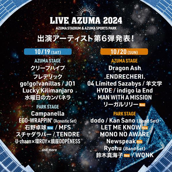 『LIVE AZUMA 2024』第6弾出演アーティスト