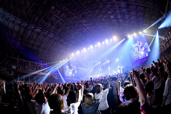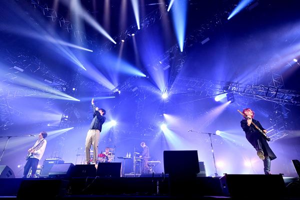 そして、いよいよback numberのメンバー3人に加え村田昭(key)、矢澤壮太(g / cho)、藤田顕(g)の6人が登場。もちろん会場は1曲目から最高潮の盛り上がりだ。前半「アイラブユー」ではイントロが流れたとたんに歓声が上がり、「水平線」では曲の世界観に会場全体が包まれる。