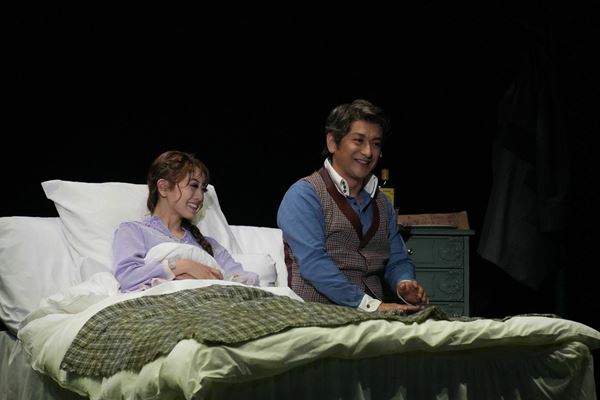 そして何より心に残るのは、円熟味を増した石丸のカルヴェロの多彩な表情だ。全盛期の舞台と、自分が人気スターであることを自覚しているが故の傲慢さと、その後の挫折による痛々しさ。長年の付き合いであるオルソップ夫人との息の合ったかけあい(実際に劇団時代からの長い付き合いであるふたりだからこその絶妙さが心憎い)や、テリーに見せる優しさとその反面の厳しさ、ネヴィルに対しても嫉妬を見せることなく彼を大切にする姿。カルヴェロは、年老いた自分が若い彼らに何をしてあげられるのかを考え、スポットライトから外れるかのようにそっと去っていこうとする。まさに人生の酸いも甘いも知った人間だからこそ、という奥深さが、ベルベットのような歌声にのせて届けられるのだ。このようにしみじみと心に染み入る感動を覚えるのは、音楽劇というあり方だからこそ。文字通り、石丸のはまり役のひとつだとあらためて実感した。