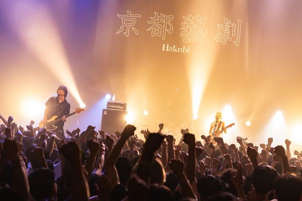 じっくりと時間を掛けてHakubiが培ってきた信念に共鳴するように、KBSホールで聴く「光芒」は今や『京都藝劇』のテーマソングのごとく心に染みわたる。「ハジマリ」でも、皆がこの瞬間を待っていたのが場の空気から伝わってくる。満場の観衆がジャンプした「Eye」が、互いの目の前に広がる絶景にさらに彩りを添えていく。
