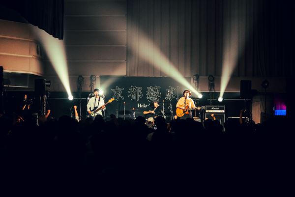 「Hakubiと出会った当初によくやっていた曲」と放った「文才の果て」はエモさ満開で、「俺らは『京都藝劇』に出るのは2回目で。みんなHakubiが好きで、音楽が好きでここに来たってことでしょ? 横にいるヤツもそうだと思うぜ。他人じゃない。音楽好きしかいないこの空間、一緒に楽しもうぜ」といざなったのは「Lucky」。ゆったりとしたBPMのパワーポップに突き上げた拳が揺れる。